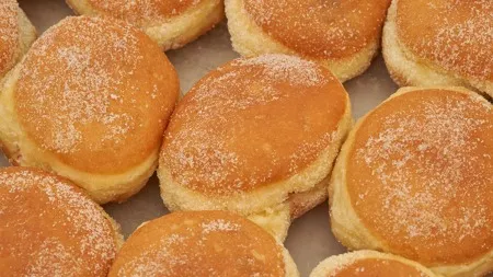 Kaum ein Gebäck spaltet Berlin so zuverlässig wie dieses runde, fettgebackene Glück. Für uns ist die Sache allerdings glasklar: Es heißt Pfannkuchen. Nicht Berliner, nicht Krapfen – Pfannkuchen. Punkt. Gegessen wird er in Berlin traditionell zu zwei Anlässen, bei denen Zurückhaltung ohnehin keine Tugend ist: zu Fasching und an Silvester. Wenn die fünfte Jahreszeit beginnt, gehören Pfannkuchen genauso dazu wie Konfetti im Haar und schlechte Kostüme. Und am 31. Dezember? Da steht der Pfannkuchen sinnbildlich für alles, was wir uns fürs neue Jahr wünschen: Süße, Fülle und ein bisschen Glück auf Vorrat.