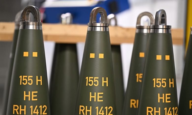 Artilleriegranaten vom Kaliber 155 Millimeter stehen in der Fabrik von Rheinmetall. (Foto: picture alliance/dpa)