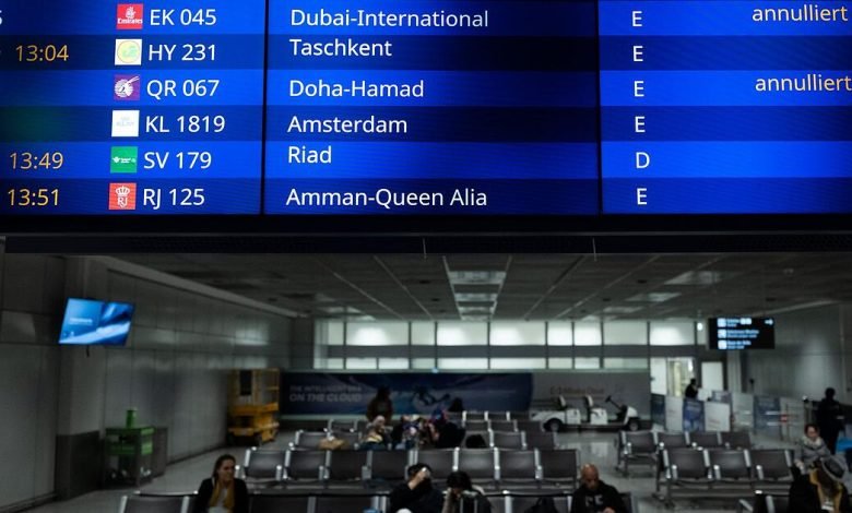 Wegen der Eskalation des Nahost-Konflikts seit dem Wochenende sitzen derzeit Zehntausende Menschen fest, die im Nahen Osten Urlaub machen oder einen der dortigen Flughäfen als Drehkreuz nutzen wollten. Viele Staaten haben ihren Luftraum geschlossen, Kreuzfahrtschiffe liegen in Häfen fest. Nach Angaben des Deutschen Reiseverbands (DRV) sind allein rund 30.000 Kunden deutscher Veranstalter betroffen. Ein Sprecher des Auswärtigen Amts nannte dies “eine einigermaßen verlässliche Größe”.