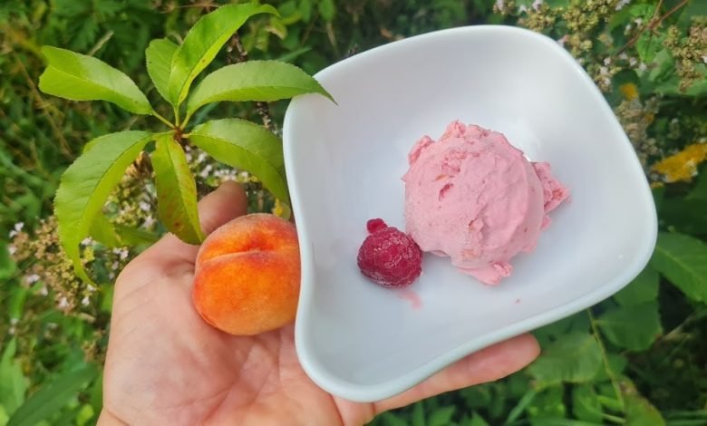 Kategorien: Süßspeise, Eis, Pfirsich, Himbeere, Quark