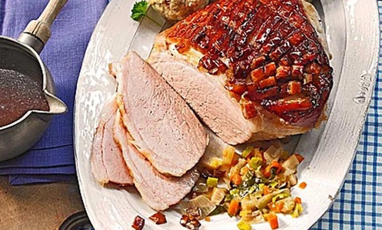 Bayrischer Krustenbraten mit Dunkelbiersoße und Semmelknödeln | ABC-Z