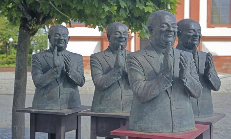 Daneben liegt eine Negativform von Alexei Nawalnys Kopf. Sie ist Teil von Messers Projekt „Memento Nawalny“, einer Gedenkstele für den russischen Oppositionellen. Sie soll im kommenden Jahr auf dem Korber Kopf aufgestellt werden: einem Berg in der Gemeinde Korb bei Stuttgart. In ihrer Heimatgemeinde veranstalten Ruth und Guido Messer seit 20 Jahren den Skulpturenrundweg „Köpfe am Korber Kopf“. Dazu werden jedes Jahr zehn Standorte vergeben, sieben an Profikünstler*innen, drei an Schulen oder Vereine. Die Skulpturen beschäftigen sich auf unterschiedliche Weise mit Köpfen und stehen dort für ein Jahr. Messer selbst steuert jedes Jahr ein Werk bei. Die 19. Runde steht in diesem Jahr unter dem Motto Recycling.