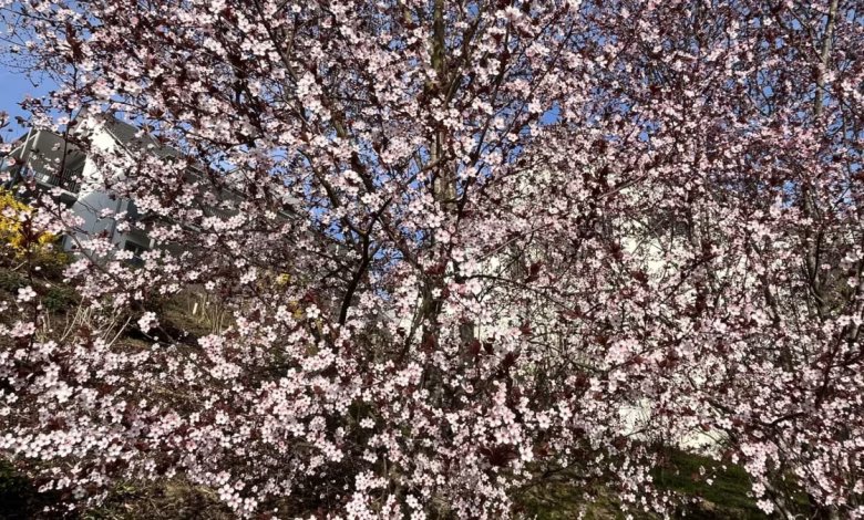 Lichterfelde – Trotz der erneuten Kälte entfaltet der Frühling jetzt seine ganze Blütenpracht. Ein besonders schönes Exemplar unter den Frühjahrsblühern ist die Blutpflaume (Prunus cerasifera ‚Nigra‘). Der strauchartig wachsende, mehrstämmige Baum ist bald übersät mit zartrosa Blüten.