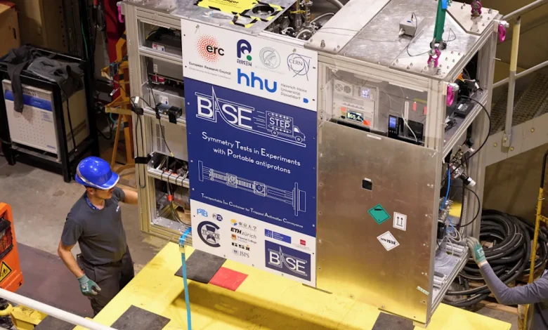 Erstmals in der Geschichte der Menschheit sollen am Dienstag (24. März) Antiteilchen auf der Straße transportiert werden – um zu beweisen, dass so ein Transport überhaupt möglich ist und die Teilchen nicht entweichen. „Wir betreten absolutes Neuland“, erklären die Physiker Stefan Ulmer und Christian Smorra von der Universität Düsseldorf, die in Genf am europäischen Kernforschungszentrum Cern die Grundlagen des Universums erforschen. „Nie zuvor wurde etwas Ähnliches bewerkstelligt.“