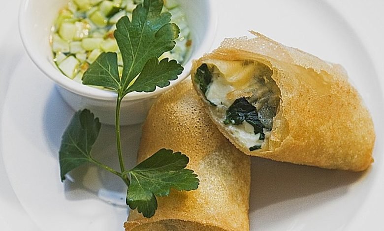 Feta-Blattspinat-Rolle mit Sesam und süß-saurem Dip von chefkoch | ABC-Z