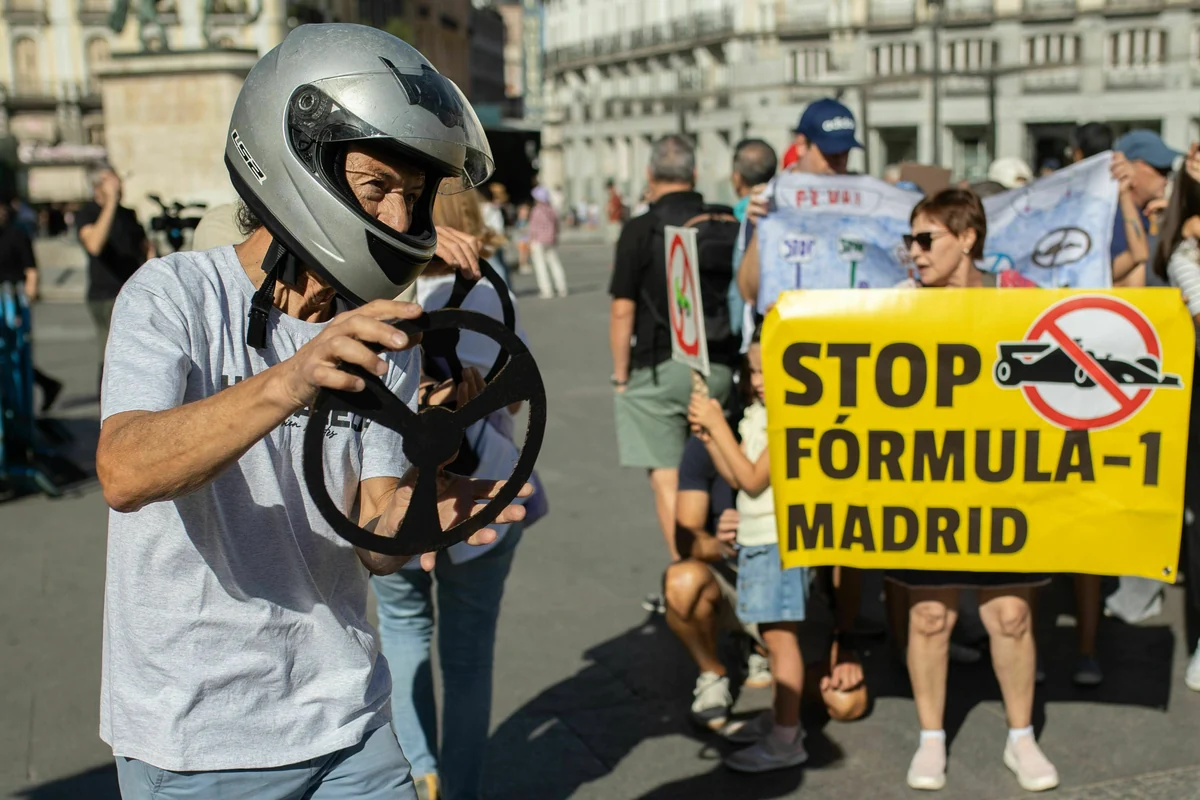 Proteste in Madrid gegen den Bau der Formel-1 Rennstrecke im September 2025