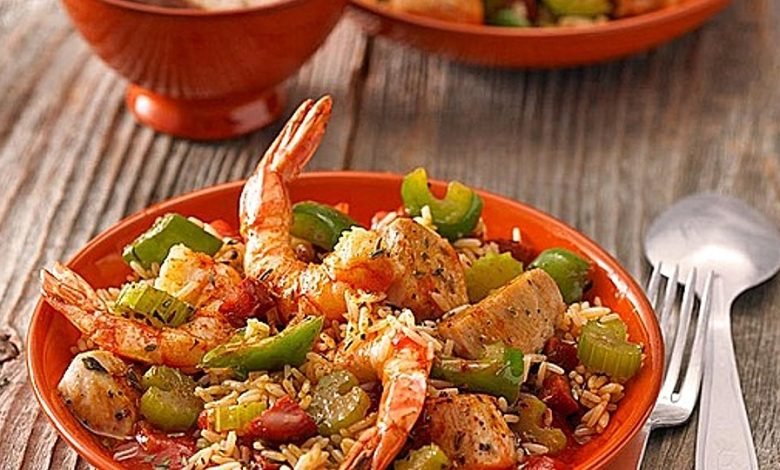 1736011282589338 amp fettarm Fisch Garnele geflügel Geflügelfond Gemüse Getreide Hauptspeise Hühnerbrust kalorienarm Kanada Knoblauchzehe Langkornreis layout_width_996 Muskat normal oder Öl Paprikaschote Petersilie Pfeffer Reis rezepte Salz Schmoren Staudensellerie Tabasco Thymian und USA Zwiebel