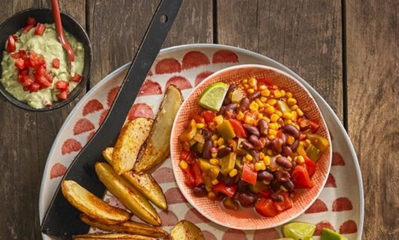 Kartoffelspalten mit Gemüse mexikanischer Art und Guacamole von CookingJulie | ABC-Z