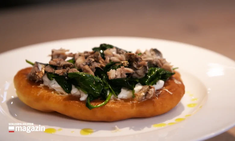Langos mit saurer Sahne, Spinat und Kieler Sprotten | ABC-Z