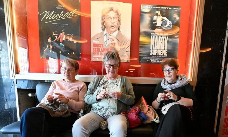 Bevor der Film startet, wird im Residenz-Kino erst mal munter geplaudert. Es geht um Strickmuster, neue Techniken, weitere anstehende Strickevents. Herma (59) aus Krefeld ist begeistert: “Ich stricke gerne in Gesellschaft und bekomme hier viele schöne Tipps.” Auch ihre Freundin Regina arbeitet im Foyer schon fleißig an ihrem Pullunder, bevor es in den Saal geht.