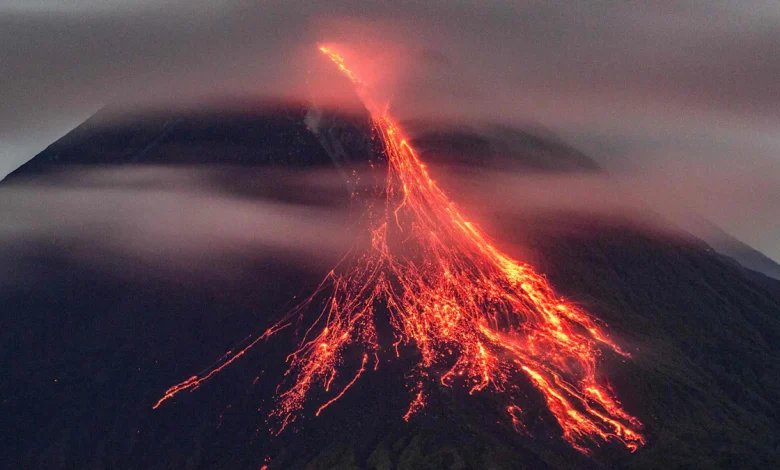 Heiße Zeit: Merapi spuckt Lava auf seine Hänge. Der extrem aktive und gefährliche Vulkan auf der indonesischen Insel Java liegt etwa 35 Kilometer nördlich der Stadt Yogyakarta, die als Ausgangspunkt für Touristentouren an den Berg dient.