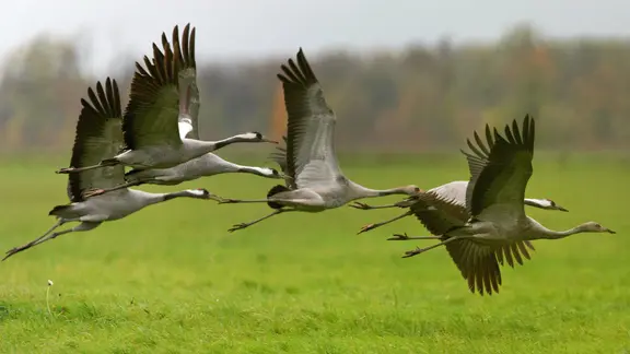 Natur- und Landschaftsführer bieten regelmäßig Touren in beide Teile des Parks an – zu Fuß, mit dem Kanu oder Fahrrad. Mal stehen Greifvögel im Mittelpunkt, mal Fledermäuse, Pflanzen oder Pilze. Für Vogelfreunde lohnt sich der Besuch besonders im Herbst, der Saison der Kraniche. Ab Ende August sammeln sich an der Seenplatte zunächst die Brutpaare aus der näheren Umgebung. Ab Mitte September kommen Zehntausende Vögel aus Skandinavien hinzu, die vor dem Weiterflug nach Süden in der Region rasten. An mehreren Seen können Naturfreunde überdachte Beobachtungsstände nutzen, um den Vögeln möglichst nah zu kommen.