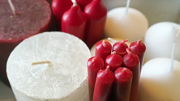 Ob schmal oder dick, farbig oder weiß, glatt oder gedreht: Kerzen sind in fast allen erdenklichen Formen und Farben erhältlich. Hergestellt werden sie überwiegend aus Paraffin oder Stearin, häufig auch aus einer Mischung beider Stoffe. Seltener sind Produkte aus Bienenwachs, Soja- und Rapsöl.