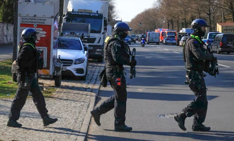 Der Einsatz dauert am späten Montagnachmittag noch an. Erst in der Nacht zum Montag war in Schöneberg ein Mann niedergeschossen worden, die Täter konnten flüchten.