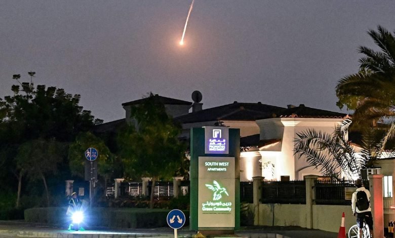 Ein Geschoss über Dubai. Kurz darauf hörten Augenzeugen eine Explosion.