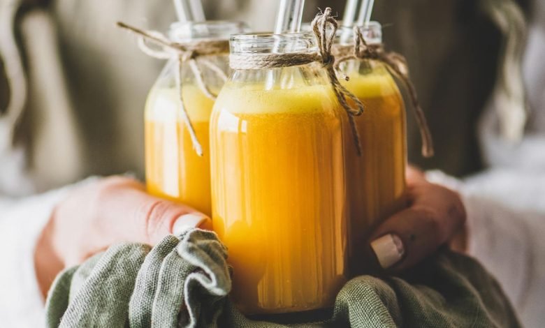 Der Ingwer-Kurkuma-Shot steckt voller Nährstoffe, darunter gute Fette und Antioxidantien für den Zellschutz – einfach ein schneller Schuss Gesundheit.