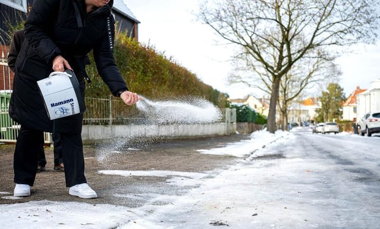 In einigen Bundesländern ist der Einsatz von Streusalz untersagt. In Hamburg wurde das Verbot wegen der extremen Wetterlage vorübergehend aufgehoben.