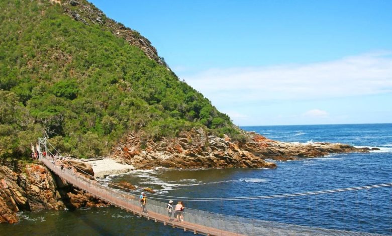 Davon aber ahnt die Gruppe am ersten Tag noch nichts beim Start im Camp mit komfortabel ausgestatteten Übernachtungs-Holzhütten. Nach einer halben Stunde schon der erste Wow-Moment: Zwei Hängebrücken überspannen die Mündung des Storms River und geben den Blick frei auf dicht bewaldete Bergrücken zu beiden Seiten und Meereswasser, das dazwischen schäumt, als hätte ein Riese Waschmittel reingekippt. Zwischen Felsen sonnen sich Klippschliefer, sehen aus wie stummelschwänzige XXL-Meerschweinchen und posieren mit Glück für Kameras. „Na, wer kennt deren engste Verwandte“, fragt Minando. „Hamster?“ „Murmeltier?“ „Oder Kaninchen?“ Die Wanderer tippen durch den Kleintierzoo. „Elefanten“, löst der Guide das Rätsel dann zur Überraschung aller auf und erklärt, Jumbo und das krabbelnde Fellknäuel hätten vor etwa 80 Millionen Jahren einen gemeinsamen Vorfahren gehabt, der bis heute im Gensatz beider Tiere verewigt ist.