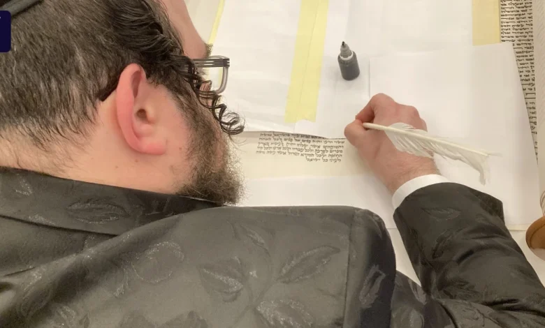 Der Mann mit der schwarzen Kippa, Vollbart und Schläfenlocken greift zu einem Federkiel und einem Fläschchen mit Tinte. Vor ihm liegt eine Pergamentrolle. Den Großteil hat er mit Blättern aus Papier bedeckt, nur wenige in Hebräisch geschriebene Zeilen sind durch das auf diese Weise entstandene Sichtfenster noch zu sehen. Mordechai Tauber wird in ein paar Minuten letzte Hand die neue Thora der Gießener Jüdischen Gemeinde legen. Diese Aufgabe kann nicht irgendwer erledigen, wie Gemeindevorsteher Dow Aviv sagt. Vielmehr bedarf es eines geschulten Schreibers. Tauber ist solch ein Sofer.
