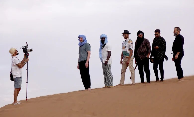 Sechs Musiker laufen über eine Düne. Grafisch stilisiert steht auf dem Cover des neuen Albums die Scheibe der Sonne über…