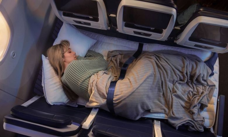Sich in der Economy-Klasse quer über die Sitze auf einer Matratze langmachen: Diese Möglichkeit bietet United Airlines Passagieren auf ausgewählten Langstreckenflügen ab 2027. Drei nebeneinanderliegende Sitze werden mit einer Matratze zu einem Bett gemacht, dazu gibt es Decke und Kissen, bei Bedarf auch Plüschspielzeug.