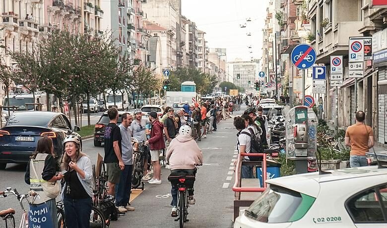 Menschenkette gegen blockierte Radwege in Mailand | ABC-Z