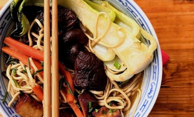 3105931463488116 Ahornsirup amp Choi Frühlingszwiebel gekocht Gemüse Gemüsebrühe Hauptspeise Ingwerpulver Karotte Knoblauchzehe layout_width_996 Mie Misopaste normal Nudeln Pak Pasta Pflanzenöl Pilz Pilze Räuchertofu Reisweinessig rezepte Sesamöl Shiitake Sojasauce Speisestärke Suppe Vegan Vegetarisch Zwiebel