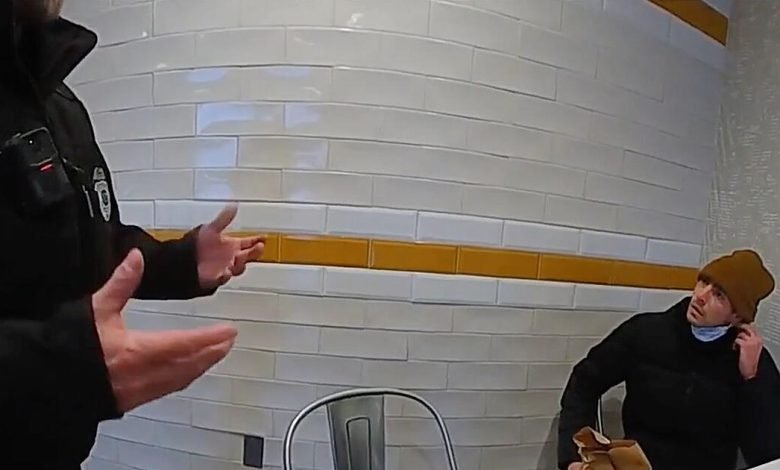 Auf dem Video, das etwa der Sender CBS ausstrahlte, ist zu sehen, wie Mangione in einem Fast-Food-Restaurant an einem Tisch sitzt, vor ihm eine braune Essenstüte. Der 27-Jährige trägt eine Mütze und Gesichtsmaske, die Mund und Nase bedeckt. Ein Polizist, gefilmt von einer Bodycam, nähert sich ihm und bittet ihn, seine Maske abzulegen. Mangione bleibt äußerlich ruhig, zieht seine Maske ab.
