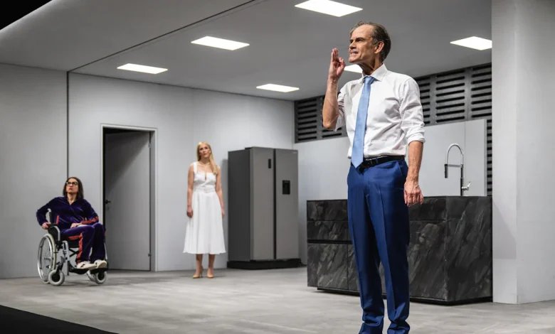 Am Anfang dieses Stuttgarter Theaterabends meldet das Radio Brandanschläge und den Vorsprung der AfD bei bevorstehenden Wahlen, am Ende hat die AfD diese Wahlen gewonnen. Alice Weidel ist Bundeskanzlerin, Björn Höcke Innenminister. Wumms! Es bleibt dann erst mal länger dunkel, damit das nachhallen kann, bevor der Schlussapplaus folgt, gespendet von einem hart rangenommenen Publikum. Martin Kušej meldet sich als Kraftlackel und Defätist der Regie zurück und lässt es mal wieder knallen. Seit seiner nicht sonderlich glücklichen, nur fünf Jahre (bis 2024) währenden Intendanz am Wiener Burgtheater war der Kärntner, der zuvor acht Jahre lang das Münchner Residenztheater leitete, etwas abgetaucht. Nun ist er in aller Härte wieder da: mit Thomas Bernhards Altnazi-Groteske „Vor dem Ruhestand“, die er am Schauspiel Stuttgart düster ins Heute überführt.