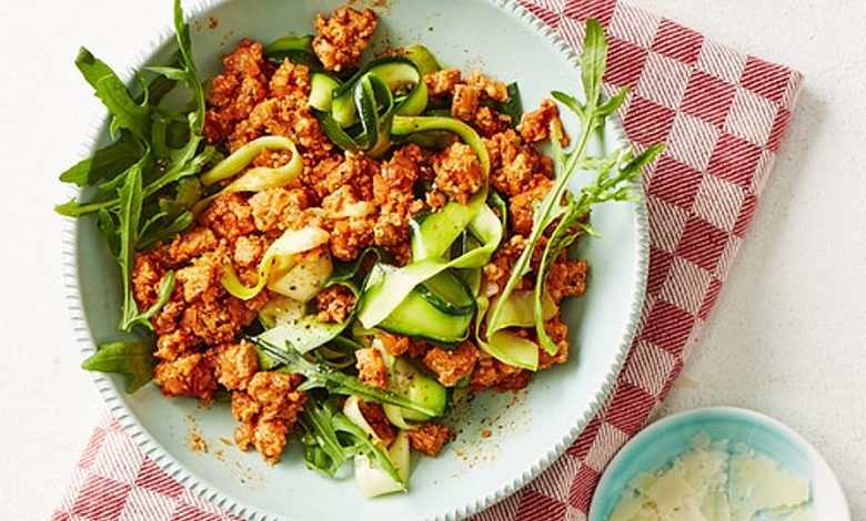 Zucchinispaghetti mit Tofu Rosso auf Rucolabett von LyrikVampire | ABC-Z